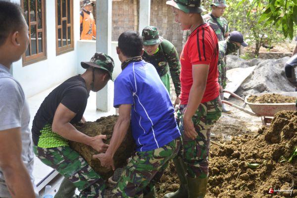 Lamongan,- Otot kawat tulang besi, Tak ada rotan akar pun jadi. Mungkin itulah kalimat yang pas untuk menggambar dengan apa yang dilakukan Serka Slamet, dan sejumlah personel Satgas TNI lainnya yang tengah bekerja di lokasi TMMD ke-109 Kodim 0812 /Lamongan, dengan sasaran RUTILAHU milik ibu khoirotun niswah di desa Tebluru, Kecamatan Solokuro, Kabupaten Lamongan, Jawa Timur.