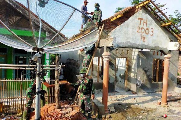 Dijelaskan Peltu Maulana, Kepala Teknisi Bangunan Kodim Brebes, bahwa target pemasangan genteng adalah setengah hari saja.