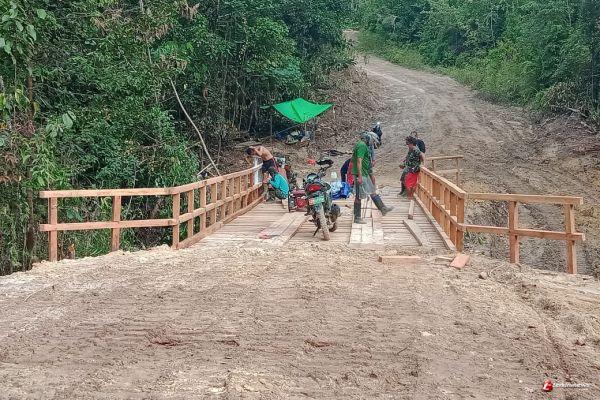 Dia bersama anggota Satgas TMMD 109 / Sintang dan warga bahu membahu mengerjakan pembangunan Jembatan 2 (dua) tersebut hingga hampir selesai.