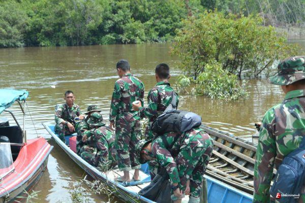 Seperti saat Serda Erwin akan berpindah ke Lokasi Pembangunan Jembatan Dua yang ada di Meraike. Dia dan Satgas TMMD 109/ Sintang lainya harus menggunakan sampan untuk menyeberangi Sungai Ketungai.