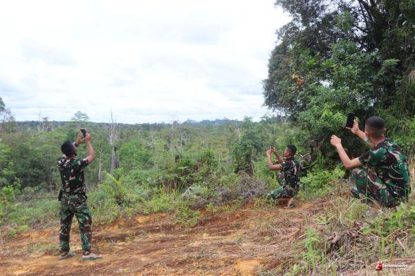 Tampak terlihat, beberapa orang anggota Satgas TMMD 109 Kodim Sintang yang sedang bersantai ria sambil mencari sinyal handphonenya, usai menjalankan aktivitas kegiatan TMMD 109 Kodim Sintang seharian penuh. (1205/Sintang).