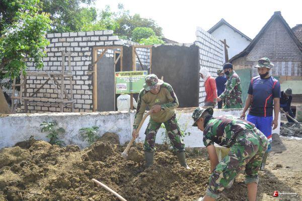 Dari pantauan, tampak warga masyarakat begitu padu. Sebagian dari mereka, sejumlah anggota masyarakat dan anggota Satgas TMMD ada yang mengusung pasir dan ada yang mengaduk semen. Sementara itu, tim teknis TMMD bersama beberapa warga masyarakat ada yang tetap melaksanakan penataan ukuran bata dinding.
