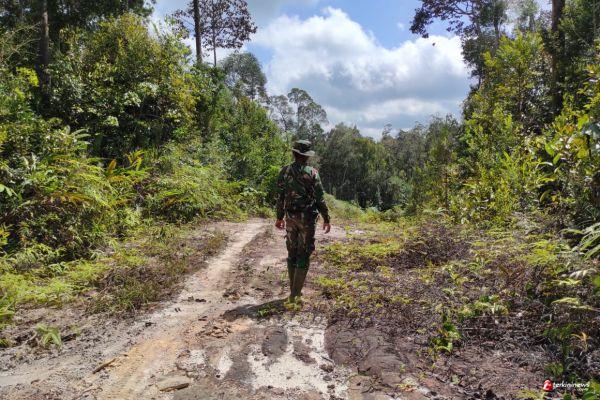 SINTANG - Anggota satgas TMMD 109 Kodim 1205/Sintang meninjau langsung progres pembangunan jalan di Desa Wira Yuda, Junat (01/10/2020).