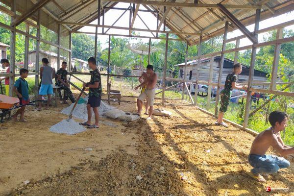 Prada Jessias membantu warga membangun gereja di dusun Meruai Batu, Desa Tirta Karya, Kecamatan Ketungau, Kabupaten Sintang, Kalimantan Barat.
