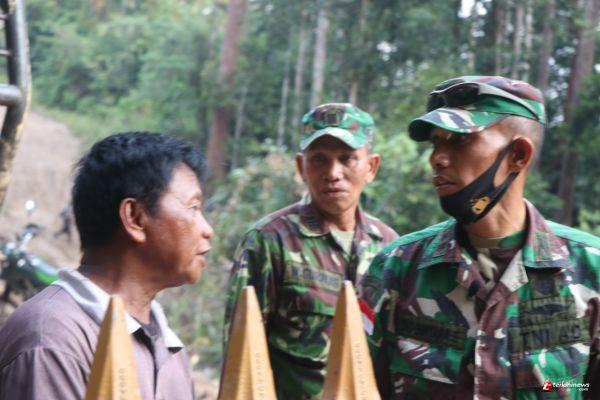SINTANG - Dansatgas TMMD 109 / Sintang, Letkol Inf. Eko Bintara Saktiawan, berbincang dengan operator alat berat tentang kondisi lapangan dan ketahanan mesinnya, Rabu (07/10/2020) pagi di lokasi pembangunan jalan desa.