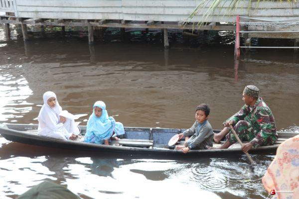 "Ini panggilan hati, dan saya melihat anak-anak disini kesulitan transportasi saat hendak berangkat ngaji,alhamdulillah ada sedikit keahlian mendayung sampan maka ,saya berinisiatif untuk antar jemput anak-anak ngaji ini menggunakan sampan kayu,"ujar Koptu Syahdan Saleh pada Kamis,(1/10/2020).