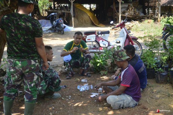 Lamongan - Keberadaan anggota TNI - AD begitu disambut baik oleh warga selama bertugas yang sudah masuk di Minggu ke-3.Itu terlihat kala mereka saling sapa dalam bekerja dan saat bersantai istirahat di rumah warga setempat.