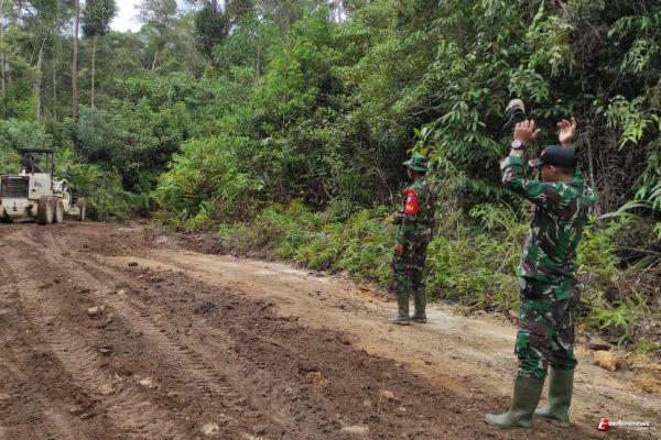 Terlihat juga di sini Serda Deki terus menghimbau dan memotivasi pekerja alat berat untuk tetap semangat dalam proses pengerjaan pembangunan jalan di Desa Wira Yuda ini.