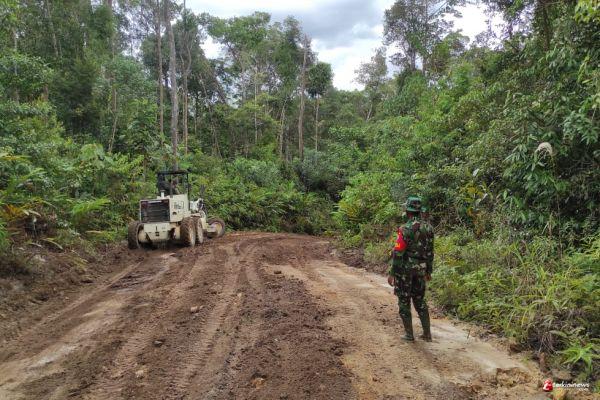 Jalan yang sebelumnya masih terdiri gundukan tanah berbatu, dengan giat TMMD 109 / Sintang, setelah sebelumnya di ratakan menggunakan exavator, sekarang bisa terselesaikan dengan baik.