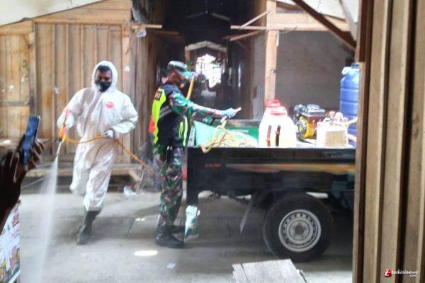Dalam rangka pencegahan penyebaran Covid-19, Satgas TMMD Reg Ke-109 Kodim 0715/Kendal melakukan penyemprotan disinfektan di Pasar Pagi Kadilangu Desa Kadilangu, Kecamatan Kangkung, Kabupaten Kendal