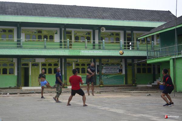 Setelah bekerja, para satgas yang masih muda-muda ternyata memanfaatkan waktu untuk mengisi sore hari dengan cara berolah raga di lapangan volley Desa Tebluru.