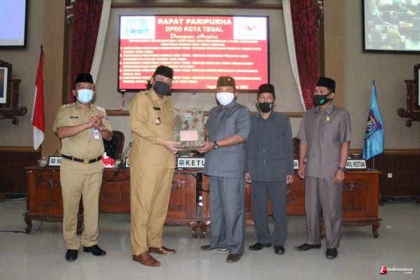 Lima Raperda ajuan Pemkot Tegal seperti yang disampaikan Wali Kota Tegal dalam penjelasannya diantaranya Raperda tentang Perusahaan Umum Daerah Air Minum Tirta Bahari Kota Tegal, Raperda tentang Perusahaan Perseroan Daerah Bank Perkreditan Rakyat Bahari Kota Tegal, Raperda tentang Rencana Induk Pembangunan Kepariwisataan Kota Tegal Tahun 2019- 2025, Raperda tentang Penyelenggaraan Perhubungan Daerah dan Raperda Kota tentang Pencegahan dan Penanggulangan Corona Virus Disease 2019 (Covid-19).