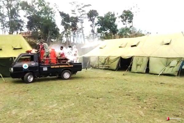 Tenda-tenda Pleton Satgas TMMD Juga Disemprot Disinfektan BPBD Bumiayu Brebes