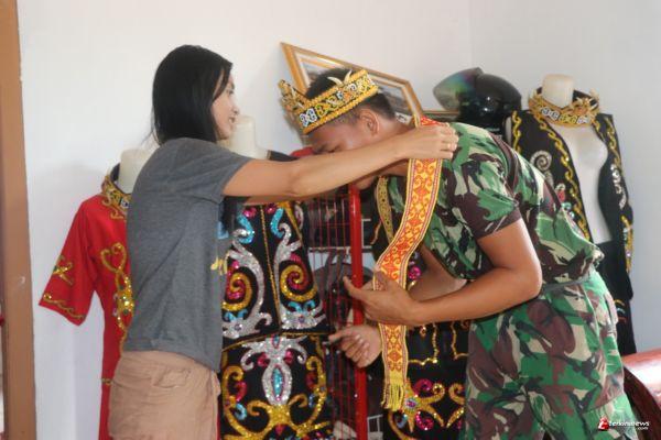 "Kerajinan tangan ini sangat cantik hasilnya, yaa mungkin karna saya juga sangat menyukai kerajianan tangan seperti ini, terlebih yg memasangkan kepada saya juga cantik", ungkap Serda Cundang sambil bercanda. (1205/sintang)