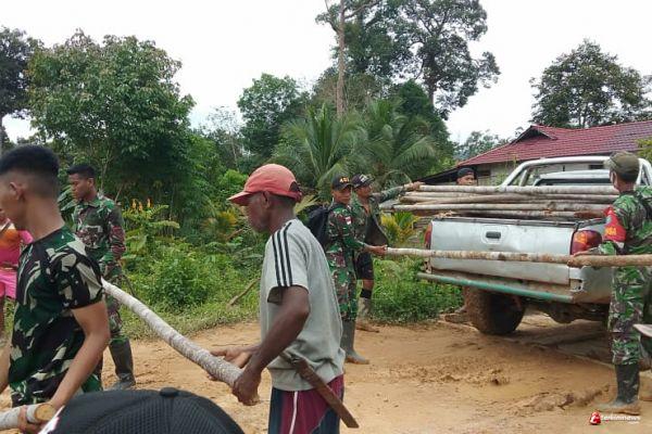 Satgas TMMD Bantu Warga Perbaiki Akses Jalan / Satgas TMMD Siapkan Material Kayu Untuk Timbun Jalan