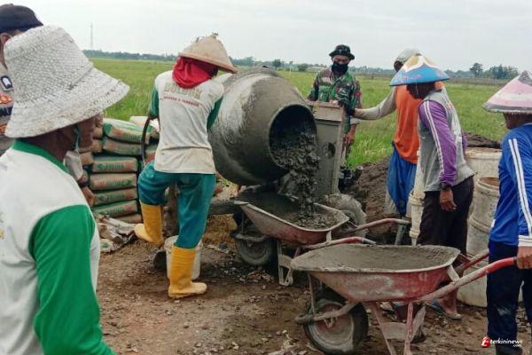 Dalam kegiatan pembangunan sasaran fisik pengecoran jalan sepanjang 1.200 meter terlihat jelas sinergitas TNI-Polri dan masyarakat bahu membahu membangun jalan yang sangat vital bagi warga desa setempat itu.