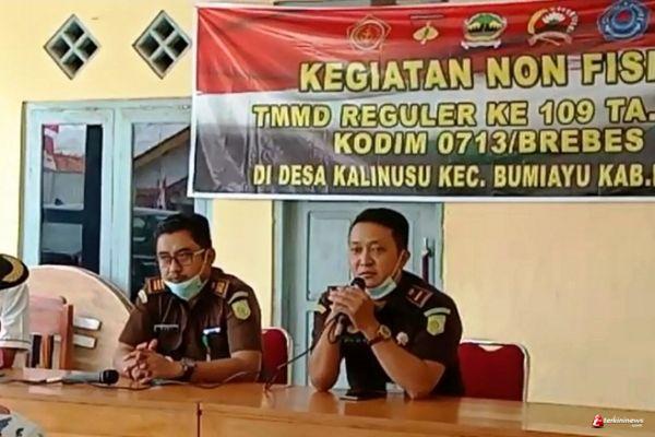 Brebes – Di kegiatan non fisik TMMD Reguler 109 Kodim 0713 Brebes, yang dilangsungkan di Aula Balai Desa Kalinusu, Kecamatan Bumiayu, Kabupaten Brebes, Jawa Tengah, Kejaksaan Negeri (Kejari) Brebes, juga memberikan materi tentang narkoba, waris dan hibah, serta tentang pentingnya kesamaan data diri antara di akte kelahiran, KTP dan ijazah. Rabu (14/10/2020).