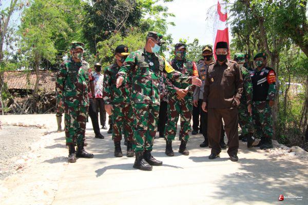 Lamongan, - Dalam kunjungan meninjau lokasi TMMD di Desa Tebluru, Kecamatan Solokuro kabupaten Lamongan, Tim Wasev dari Mabesad berserta rombongan mengecek hasil pengerjaan pengecoran jalan penghubung Desa.