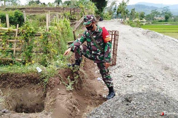 Brebes – Anggota Satgas TMMD Reguler 109 Kodim 0713 Brebes, membantu Dinas Perhubungan Kabupaten Brebes, untuk membuat lubang pondasi lampu Penerangan Jalan Umum (PJU), di jalan hasil TMMD Reguler di Desa Kalinusu, Kecamatan Bumiayu, Kabupaten Brebes, Jawa Tengah.