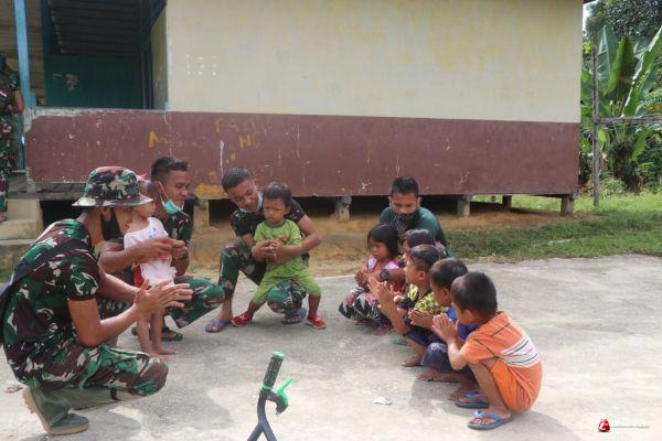 SINTANG - Tiga pekan sudah pelaksanaan kegiatan TNI Manunggal Membangun Desa dikerjakan Satgas TMMD 109/Sintang di Desa Tirta Karya Kecamatan Ketungau Tengah, Kabupaten Sintang. Banyak momen manis yang terjadi semenjak dibukanya kegiatan TMMD di desa tersebut yang di dokumentasikan oleh anggota Satgas TMMD.