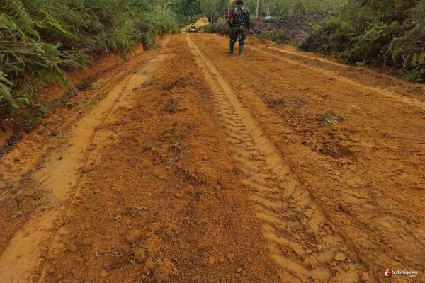 SINTANG - Pekerjaan fisik TMMD ke 109 Kodim 1205/Sintang membuka jalan baru yang menghubungkan Desa Tirta Karya -Wira Yuda Kecamatan Ketungau Tengah Kabupaten Sintang Kalimantan Barat sudah memasuki hari ke 24.pada Kamis (15/10/2020).