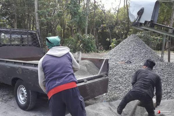 Brebes - Agar tidak menghambat pengerjaan sasaran fisik/infrastruktur pekerjaan TMMD Reguler ke-109 Kodim 0713 Brebes di Desa Kalinusu, Kecamatan Bumiayu, Kabupaten Brebes, Jawa Tengah, material bangunan terus digelontorkan, baik itu batu split, semen maupun pasir.