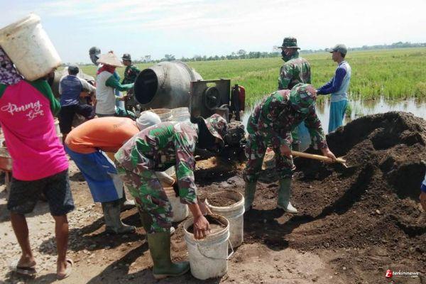 Danramil 05/Cepiring Kapten Cpl Esti Purwanto mengatakan, guna mempercepat dan menjaga kualitas bangunan jalan itu, TNI Satgas bersama warga masyarakat Desa Sendang Kulon bahu membahu mengerjakan pembangunan jalan rabat beton itu.