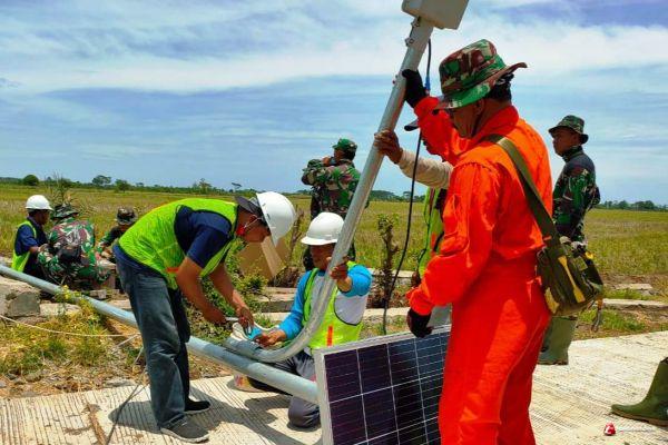 Luar biasa, sebagai pelengkap dari program fisik pengecoran jalan desa dalam kegiatan TMMD REG 109 TA 2020 Kodim 0715/Kendal, dilakukan pemasangan jaringan penerangan jalan umum(PJU) .