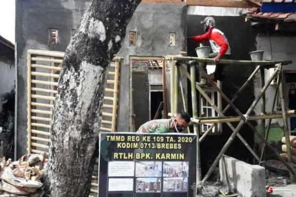 Pengacian Dinding Rumah Karmin Juga Dikerjakan Tenaga Ahli Bangunan Kodim Brebes