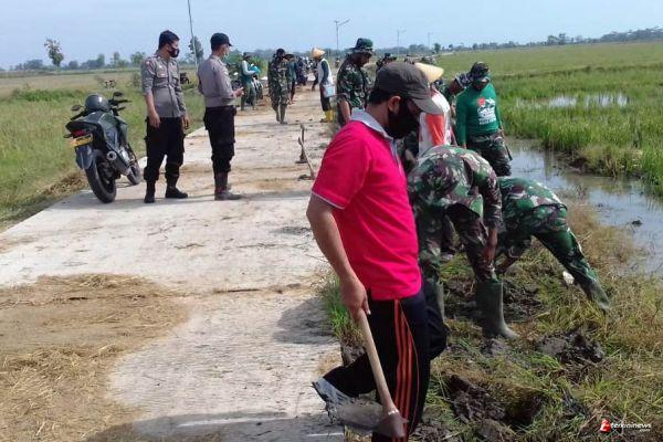 Perangkat Desa Ikut Terjun Dalam Pembereman Jalan Tmmd