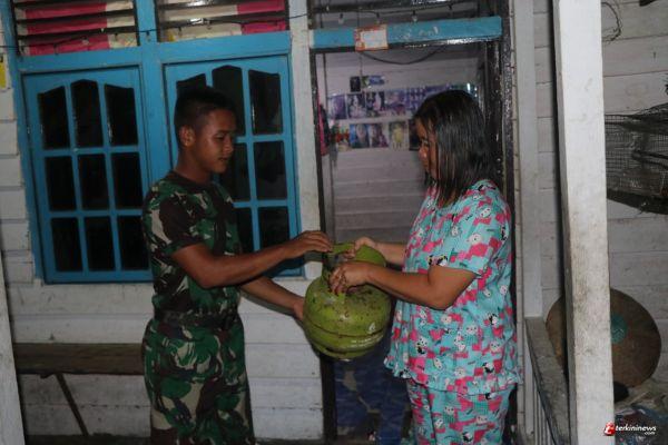 SINTANG - Anggota Satgas TMMD 109 / Sintang memiliki karakter suka menolong. Seperti Prada Yulius Baba melihat Bu Ami mau membeli gas melon maka buru-buru dia menawarkan bantuan.