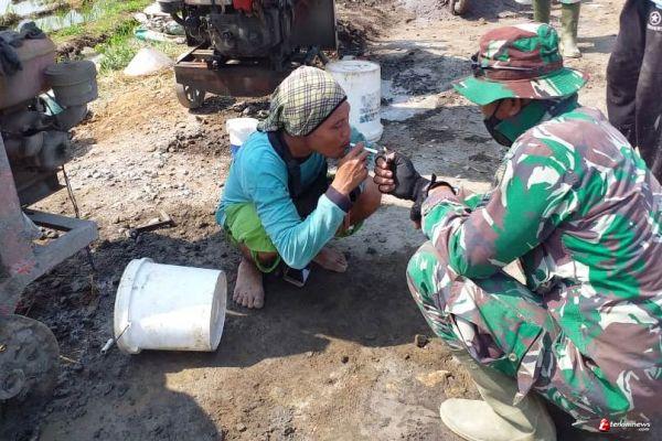 Seperti saat Pelda Supriyadi memberi sebatang rokok kepada Tasrip (39) warga Dusun Kacangan Lor, Desa Sendang Kulon.