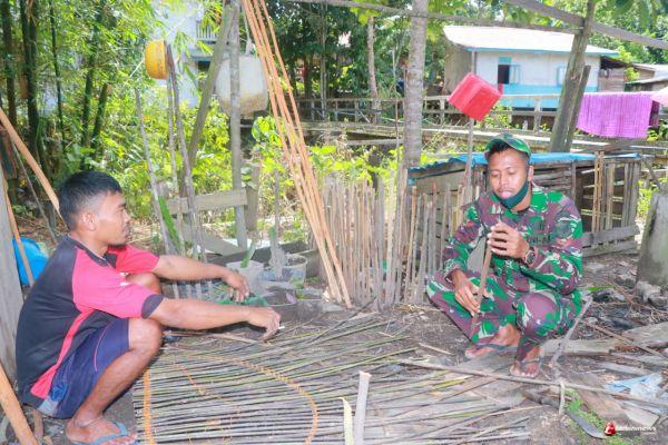SINTANG - Anggota Satgas TMMD 109 / Sintang yaitu Serda Robi Sunata mengunjungi bapak Iwan yang sedang membuat perangkap, Kamis (15/10/2020).