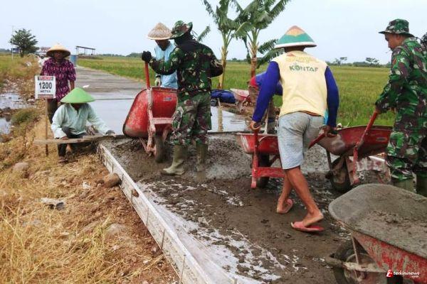 Terus Bahu Membahu di Pengecoran Jalan TMMD