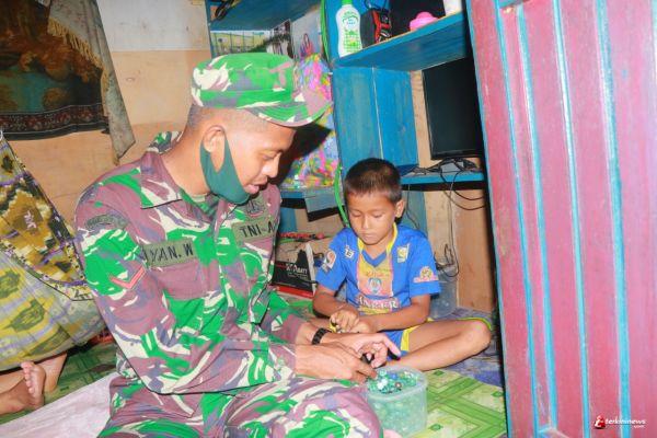Menangis, Kopda Riyan Hibur Yuda Dengan Bermain Kelereng