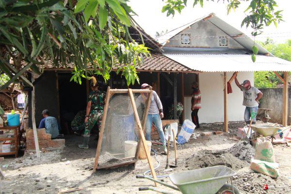 Lamongan - Pemasangan Batako untuk dinding bedah rumah milik Mian kini telah mencapai 80 persen. Rumah Tinggal Layak Huni (RTLH) atau bedah rumah saat ini dikerjakan oleh satgas TNI Manunggal Membangun Desa(TMMD) Ke -109 Kodim 0812/Lamongan bersama dengan warga dalam kebersamaan dan gotong royong.