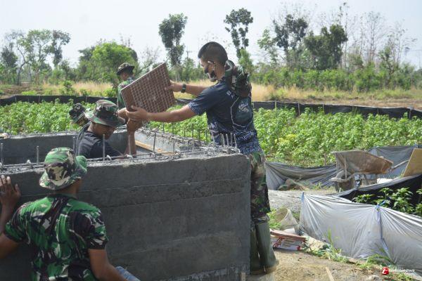 Pembuatan bak pembagian air yang digunakan untuk mengairi sawah pertanian dalam upaya penanggulangan di saat musim kemarau, kini sudah hampir berdiri dengan baik berkat kerja keras antara anggota Satgas TMMD bersama warga Desa Tebluru, Kecamatan Solokuro, Kabupaten Lamongan.