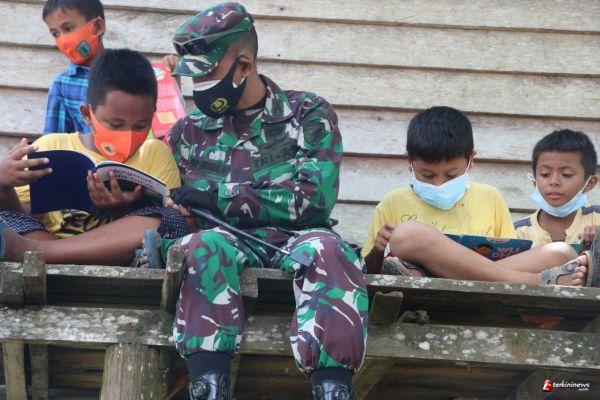 Bersama Dansatgas TMMD 109 / Sintang, Anak-anak Pengunjung  Perpustakaan Apung Penuh Semangat