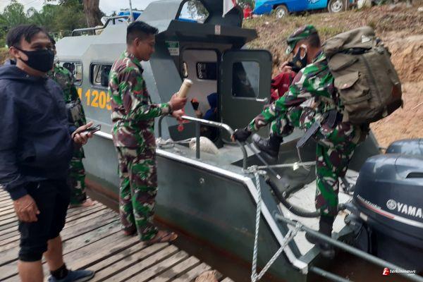 SINTANG - Usai melaunching Perpustakaan Apung di Batas Negeri, Komandan Satuan Tugas (Satgas) TNI Manunggal Membangun Desa (TMMD) Reguler 109 Kodim 1205, Letkol Inf Eko Bintara Saktiawan beserta tim dari Dinas Perpustakaan dan Kearsipan (DPK) Kabupaten Sintang, kembali ke kota Sintang, Minggu (18/10/2020).