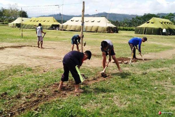 Garis Lapangan Bola Voli Kenang Kenangan Satgas TMMD Reguler Brebes Mulai Dipermanenkan