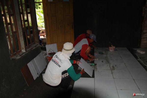 Satu Persatu pemasangan kramik tersusun rapi di Rumah Mudlikah oleh satgas TMMD 109Â