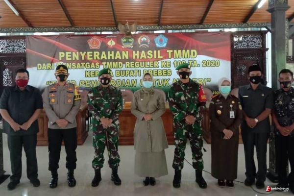 Brebes – TMMD Reguler 109 Brebes resmi ditutup Dandim 0713 Brebes, Letkol Armed Mohamad Haikal Sofyan, dalam acara sederhana yang dilangsungkan di Pendopo Kabupaten Brebes. Rabu (21/10/2020).