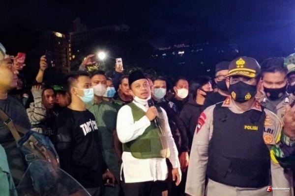 "Sudah sekarang tidak ada masalah lagi, sudah malam, dari pada ngotot ngototan kita, sudahi," ucap Andi Sudirman Sulaiman sambil menenangkan para pendemo.