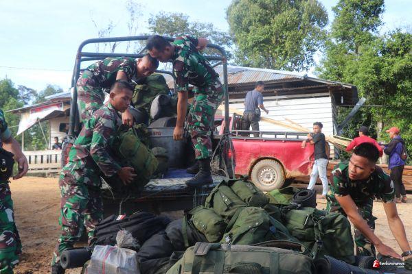 Mereka bersiap untuk pemberangkatan pulang ke Kabupaten Sintang, para prajurit tersebut berjalan dengan rapi.