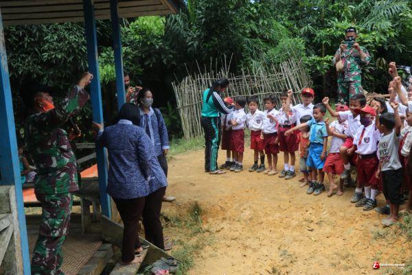 Saat Perpustakaan Apung berkunjung ke SDN 41 Kebangak, anggota Satgas TMMD 109 /Sintang dan Pengelola Perpustakaan Apung ibu Mila mendapat sambutan luar biasa.