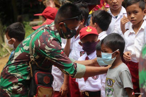 Cegah Pandemi, Prada Yugo Bagi Tips Agar Anak di Batas Negeri Mau Gunakan Masker