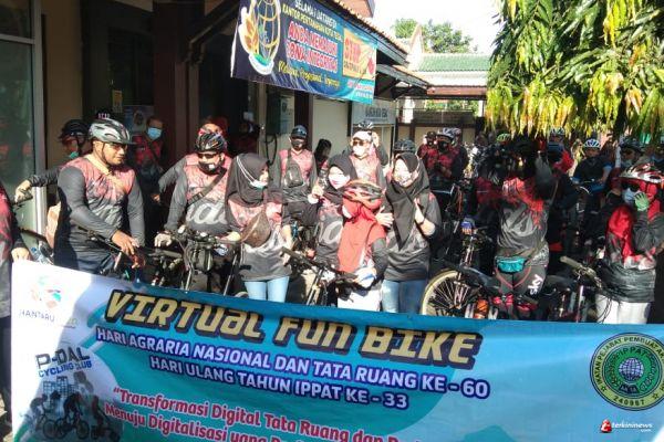 TEGAL - Dalam rangka Hari Agraria Nasional dan Tata Ruangan ( HANTURA) Ke - 60 serta HUT Ikatan Pejabat Pembuat Akta Tanah ( IPPAT) Ke - 33 Kantor Pertanahan Kota Tegal gelar kegiatan Virtual Fun Bike dengan tema "Transformasi Digital Tata Ruang dan Pertanahan Menuju Digital yang Profesional dan Terpercaya" Serta pembagian masker secara gratis untuk warga Kota Tegal yang di selenggarakan, Sabtu 31/10/20 di Kantor Pertanahan Kota Tegal Jalan Hangtuah no 13 Kota Tegal.
