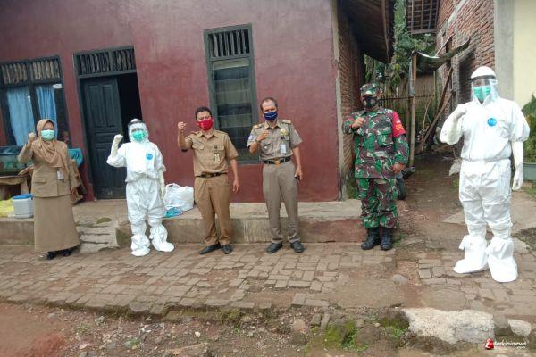 Kegiatan tersebut dihadiri langsung petugas Kesehatan Puskesmas I Cimanggu Suyit,SKM, Babinsa Koramil 14/Cimanggu Koptu Eko Daryoto dan para peserta Swab.