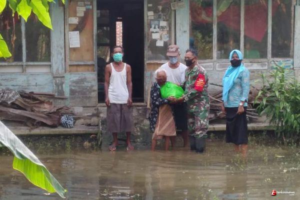 Koramil 05/Nusawungu Berikan Bantuan Sembako Kepada Korban Banjir di Desa Kedungbenda