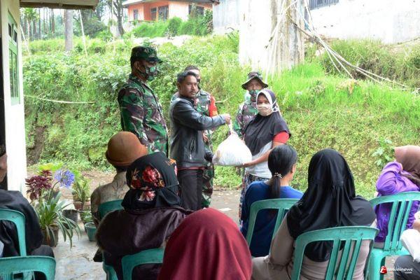 Kades setempat, Sudarsono, S.Pd, sangat mengapresiasi upaya TNI yang masih menyempatkan diri memberikan 60 paket sembako kepada warganya.